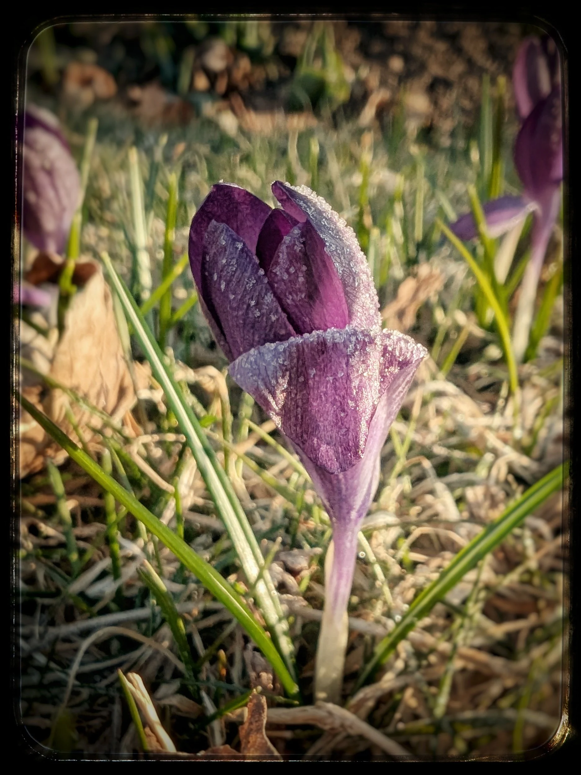 This photograph, a quick snap from my phone while walking the dog, depicts the first of the spring flowers in my neighbourhood. But it also shows the dusting of what might be the last frost of the season, too.